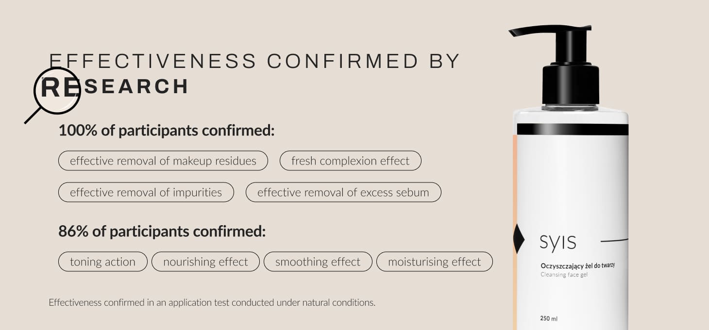The product is safe for the skin and dermatologically tested. Effectiveness was confirmed in a natural application test, with 100% of participants confirming effective removal of impurities, excess sebum and make-up residue, while leaving the complexion fresh and cleansed. All participants also noted support for their skin's natural cleansing processes and improved skin comfort and healthy appearance. As many as 86% of the participants confirmed a toning, nourishing and smoothing effect, as well as maintaining an adequate level of hydration, while 80% noted a soothing effect and support for skin regeneration.