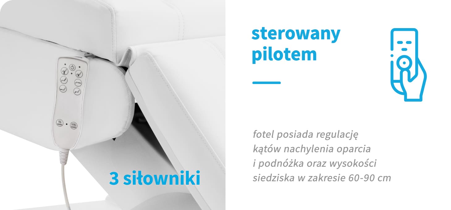 Fotel kosmetyczny elektr. Azzurro Lux 3m biały z podgrzewaniem