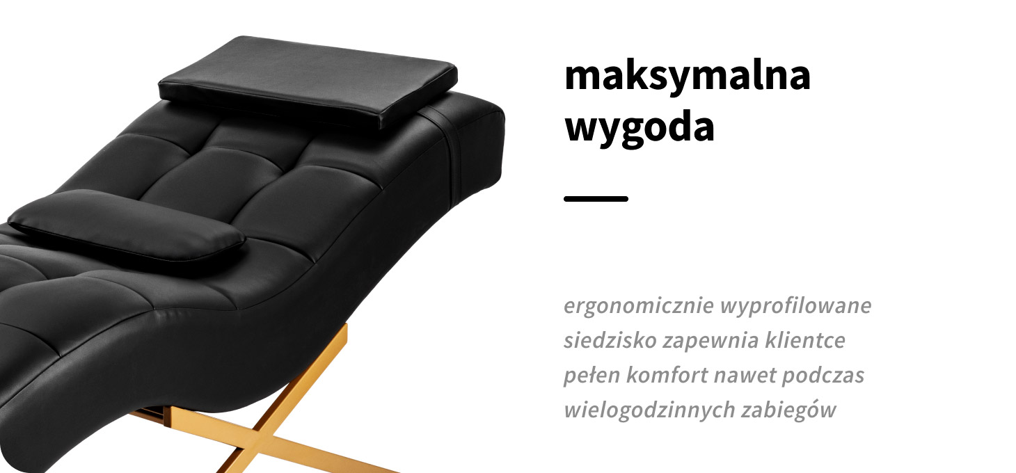 Sillon Alba to profesjonalny fotel zabiegowy do stylizacji rzęs, stworzony z myślą o gabinetach kosmetycznych oraz salonach stylizacji rzęs. Stabilna konstrukcja i ergonomicznie wyprofilowane siedzisko zapewniają klientce wygodę nawet podczas wielogodzinnych zabiegów przedłużania i zagęszczania rzęs, makijażu permanentnego czy stylizacji brwi. Nowoczesny, elegancki design w odcieniach czerni i złota sprawia, że wnętrze nabiera profesjonalnego charakteru.