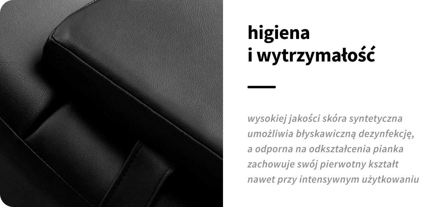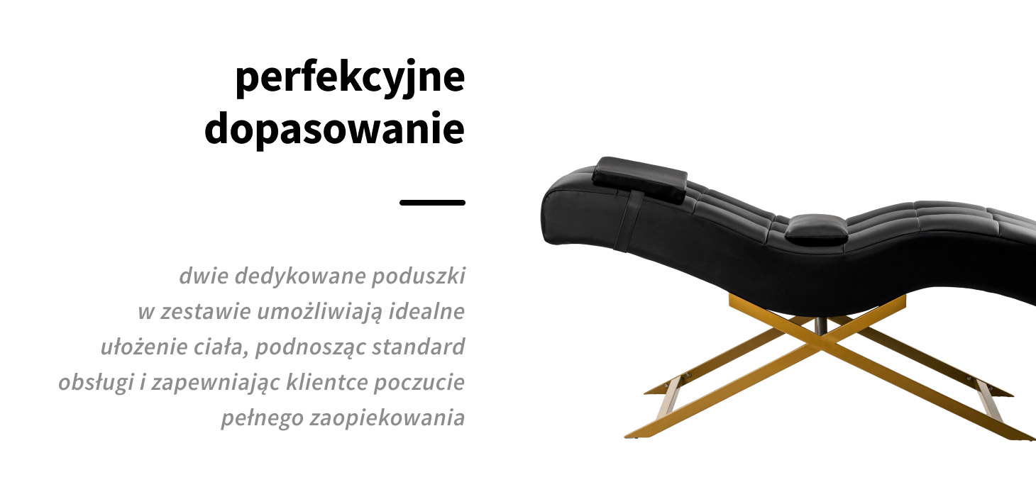 Odpowiednie wyprofilowanie materaca wspiera plecy i sprzyja rozluźnieniu mięśni, pozwalając utrzymać stabilną, komfortową pozycję przez cały czas trwania zabiegu. Ergonomiczna konstrukcja wspiera również prawidłową postawę pracy stylistki rzęs, pomagając ograniczyć napięcie w obrębie kręgosłupa i zmniejszyć zmęczenie przy długotrwałych usługach. To realne wsparcie w codziennej, intensywnej pracy w salonie. W zestawie znajdują się dwie poduszki, które dodatkowo podnoszą komfort ułożenia ciała i umożliwiają lepsze dopasowanie pozycji do potrzeb klientki.