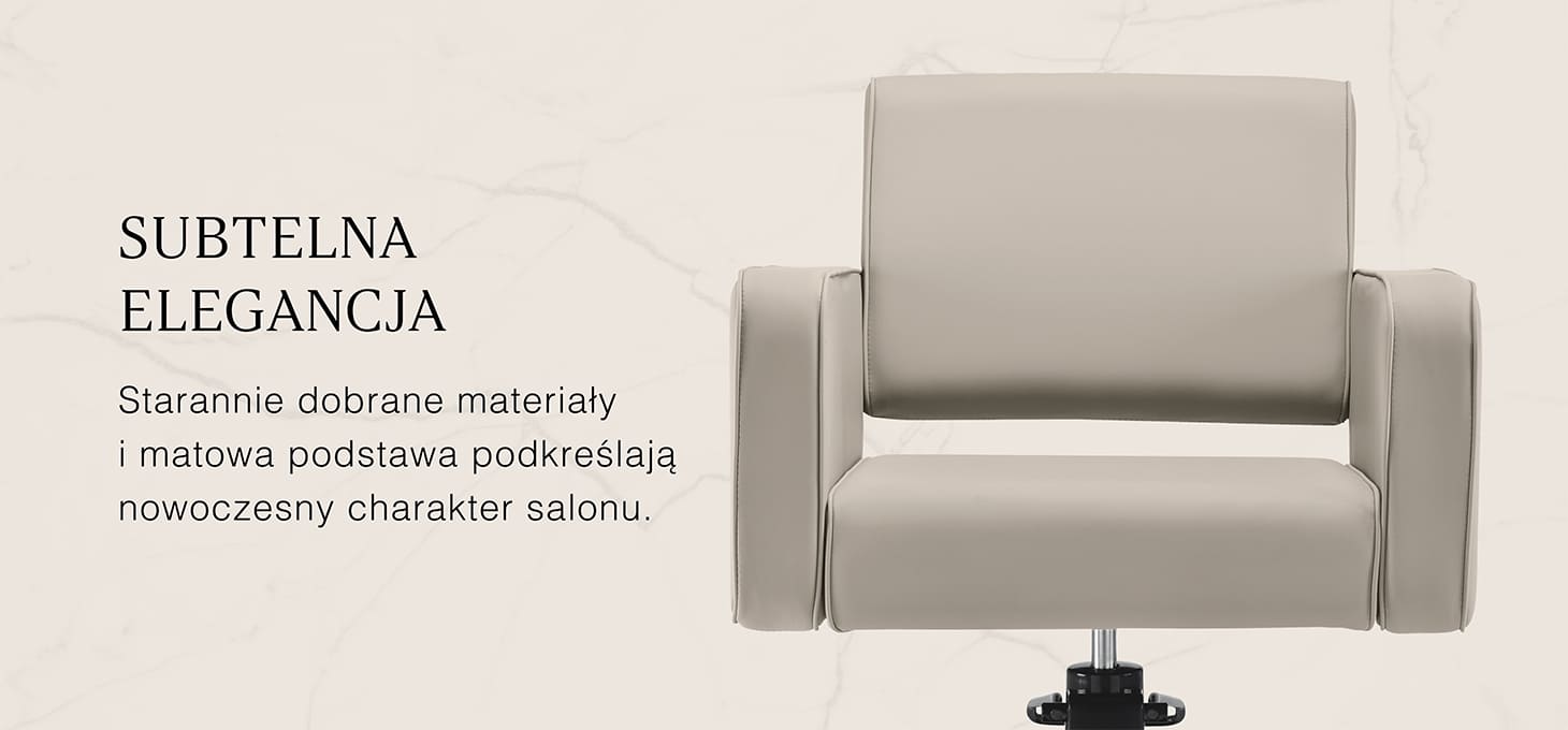 Fotel fryzjerski Gabbiano Bilbao łączy minimalistyczny design z funkcjonalnością i wygodą codziennego użytkowania. Subtelnie zaokrąglone linie nadają mu lekkości i nowoczesnego charakteru, a stabilna, kwadratowa podstawa w matowej czerni podkreśla jego stylowy wygląd. Miękkie wypełnienie w połączeniu z przyjemną w dotyku skórą syntetyczną w odcieniach szarości i beżu zapewnia wygodę nawet podczas długich zabiegów. Starannie dobrane materiały gwarantują trwałość, odporność na wilgoć oraz łatwość czyszczenia. Fotel doskonale komponuje się zarówno z nowoczesnymi, jak i klasycznymi aranżacjami, nadając salonowi profesjonalnego charakteru.