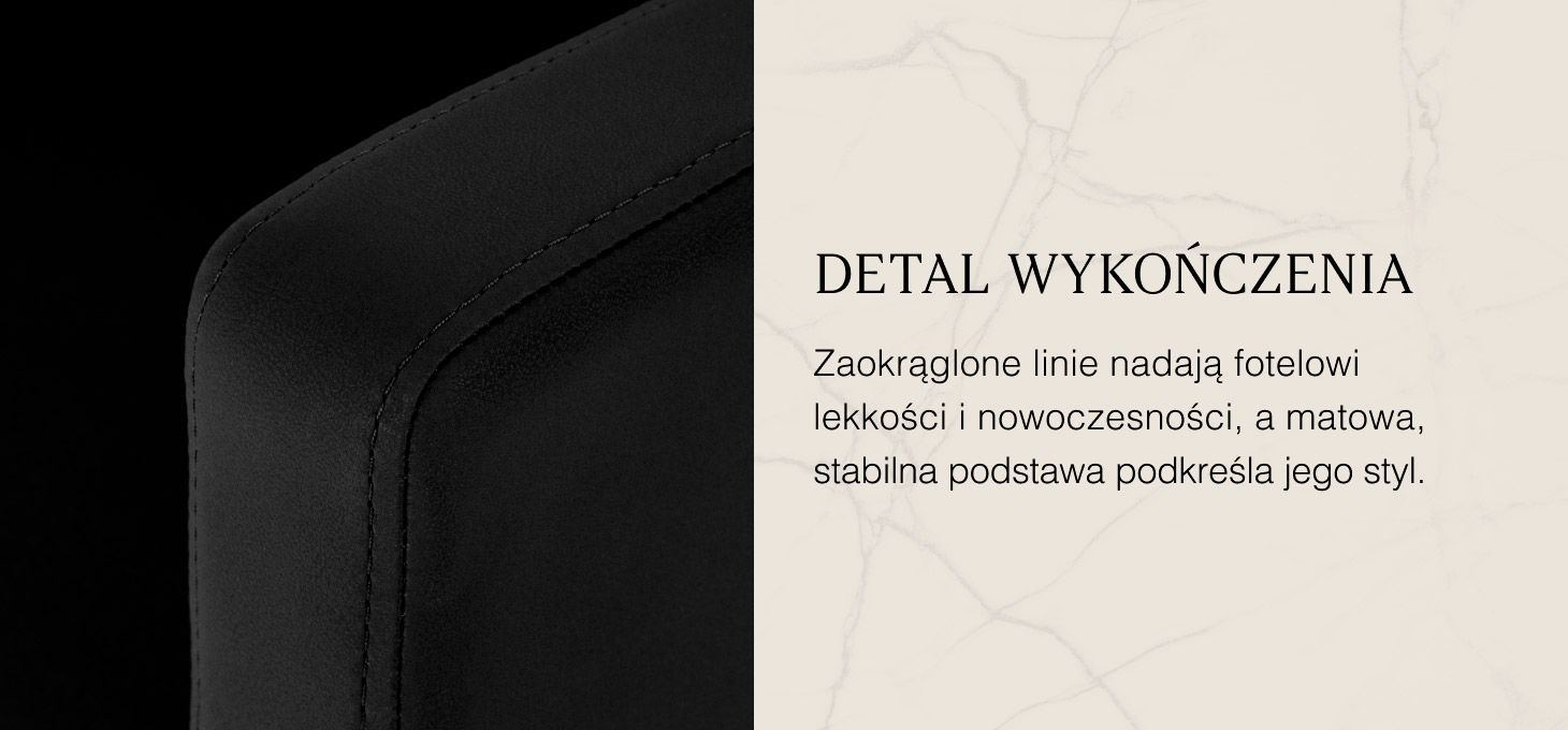 Zaokrąglone linie fotela wprowadzają lekkość i nowoczesną estetykę, a stabilna, kwadratowa podstawa w matowej czerni podkreśla stylowy wygląd. Przyjemna w dotyku skóra syntetyczna w odcieniach czerni zapewnia wygodę nawet podczas długich zabiegów, a przy tym gwarantuje trwałość, odporność na wilgoć oraz łatwość czyszczenia. Fotel pasuje zarówno do nowoczesnych, jak i klasycznych aranżacji, podkreślając profesjonalny wizerunek salonu.