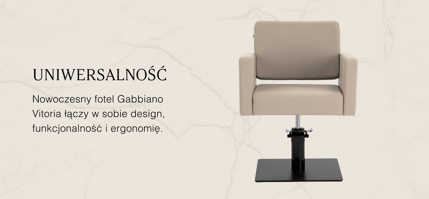 Fotel fryzjerski Gabbiano Vitoria to połączenie nowoczesnej estetyki i funkcjonalności, cenionej w codziennej pracy w salonie fryzjerskim. Wyposażony w wydajny podnośnik hydrauliczny pozwala na płynną regulację wysokości, ułatwiając pracę stylisty. Odpowiednio wyprofilowane siedzisko sprzyja komfortowi podczas dłuższych zabiegów, a minimalistyczna forma doskonale wpisuje się w aranżacje nowoczesnych wnętrz.