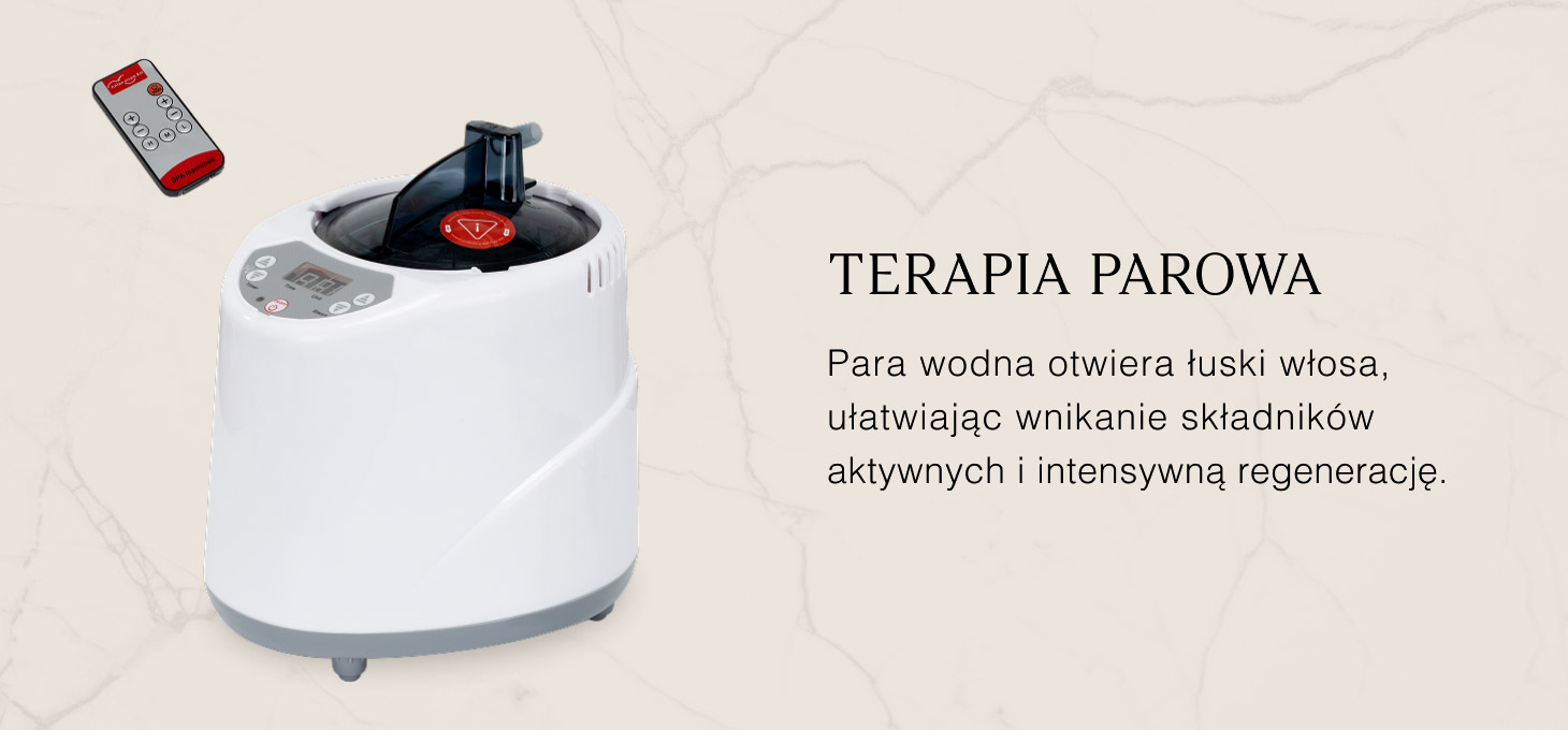 W zestawie znajduje się specjalistyczne urządzenie wytwarzające parę oraz dedykowana osłona na umywalkę, która pozwala precyzyjnie przeprowadzić zabieg. Ta nowoczesna metoda pielęgnacji wykorzystuje właściwości pary wodnej, by intensywnie regenerować i nawilżać włosy. Dzięki niej składniki aktywne zawarte w maskach, ampułkach i innych preparatach wnikają głębiej, wspierając odbudowę i wzmocnienie włosów. Terapia parowa poprawia ich strukturę, zwiększa odporność na uszkodzenia i przywraca zdrowy blask, sprawiając, że stają się miękkie, elastyczne i pełne życia.