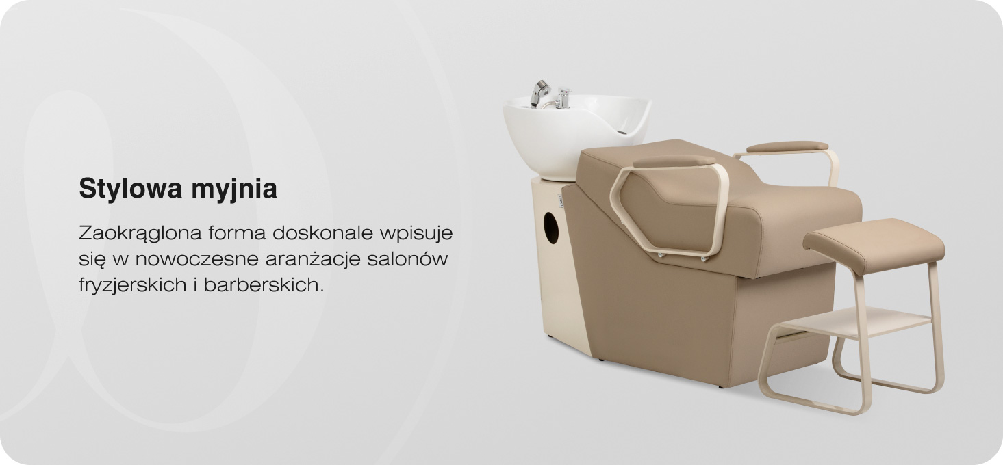 Myjnia fryzjerska Omega Marina łączy minimalistyczny design z praktycznymi rozwiązaniami, które wspierają wygodę codziennej pracy. Zintegrowana konstrukcja zapewnia stabilność oraz spójny, estetyczny wygląd stanowiska, a zaokrąglona forma doskonale wpisuje się w nowoczesne aranżacje salonów fryzjerskich i barberskich. Ergonomicznie wyprofilowane siedzisko umożliwia klientowi przyjęcie komfortowej, półleżącej pozycji, a dopasowany podnóżek dodatkowo zwiększa wygodę podczas zabiegów. Fotel wyposażony w wygodne oparcie oraz profilowane podłokietniki, co zapewnia stabilne podparcie i podnosi komfort korzystania z myjni.