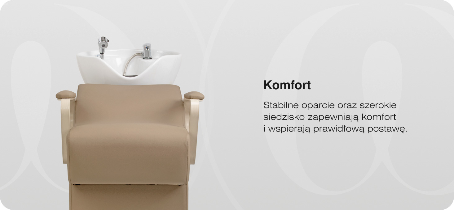Głęboka, zaokrąglona ceramiczna misa w odcieniu bieli ogranicza rozchlapywanie wody oraz kosmetyków, wspierając utrzymanie czystości na stanowisku pracy. Trwała ceramika wyróżnia się wysoką odpornością na przebarwienia, zarysowania oraz działanie środków chemicznych. Wyprofilowany kołnierz zapewnia stabilne podparcie głowy klienta, a praktyczna podpórka w misie umożliwia wygodne ułożenie głowy. Silikonowa nakładka ogranicza odczucie chłodu, podnosząc komfort klienta podczas zabiegów.