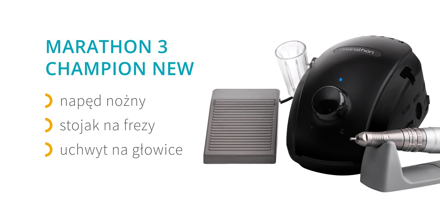 Saeyang Marathon 3 Champion NEW to nowa, odświeżona generacja wysokiej klasy frezarki cenionej przez specjalistów. Ułatwia dokładne opracowanie skórek i paznokci oraz usuwanie pozostałości poprzednich stylizacji, co znacznie usprawnia przygotowanie ich pod dalsze zabiegi. Dobre wyważenie głowicy oraz doskonale przemyślane funkcjonalności sprawiają, że frezarka doskonale sprawdzi się zarówno w użytku profesjonalnym, jak i domowym.