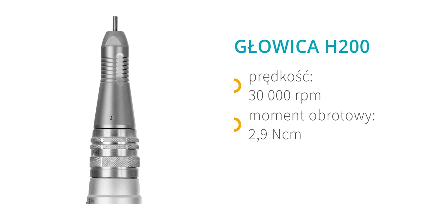 Głowica H200 doskonale leży w ręce, co gwarantuje wysoki komfort pracy. Wyposażona jest w prosty w obsłudze system Twist-Lock, który pozwala na szybką i płynną wymianę frezów. Dzięki temu praca z urządzeniem jest wyjątkowo łatwa oraz intuicyjna, co zostanie docenione również przez bardziej wymagających użytkowników. Element jest odpowiednio wyważony i ergonomicznie wyprofilowany, a dodatkowo drgania głowicy zostały ograniczone, dzięki czemu nawet wielogodzinna praca z frezarką nie męczy nadmiernie ręki. Elastyczny kabel sprężynka zapewnia wysoki komfort pracy, osiągając nawet 135 cm długości przy znacznym rozciągnięciu.
