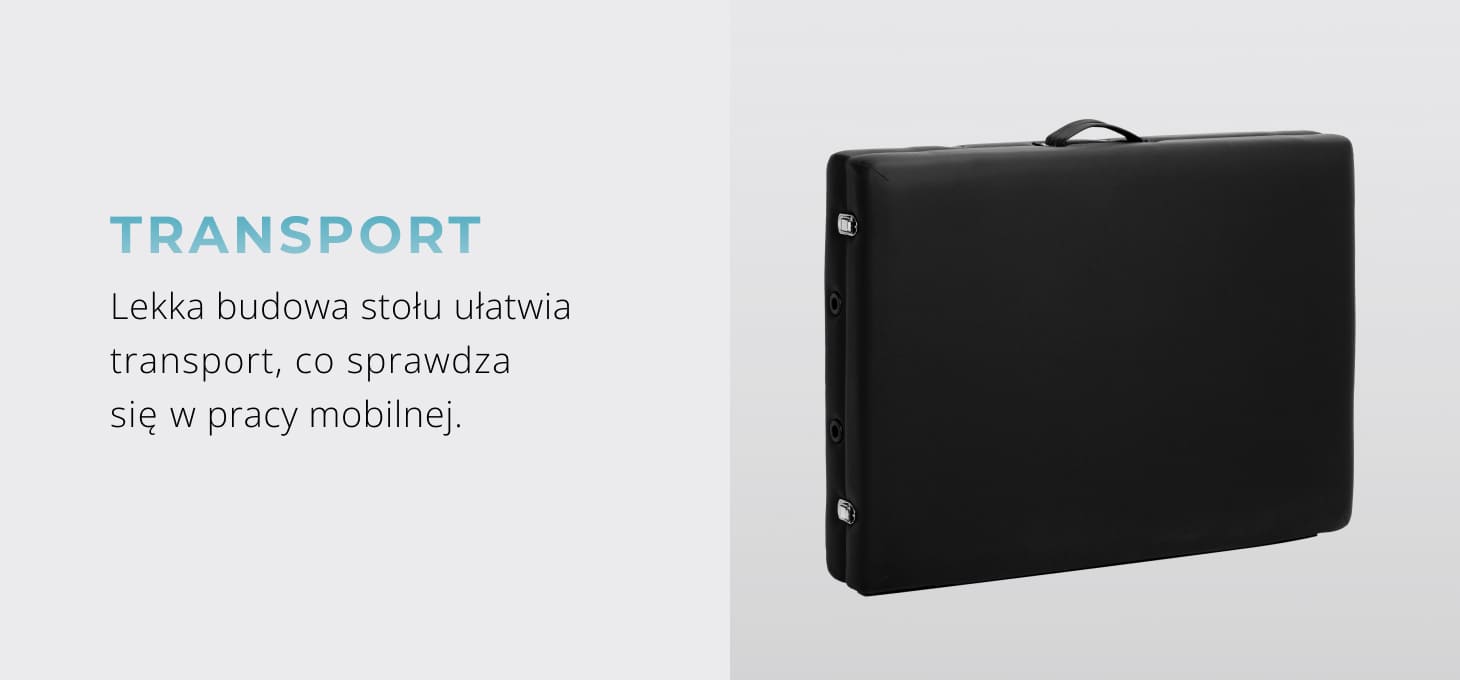 Lekka konstrukcja ułatwia przenoszenie, co czyni stół idealnym wyborem do pracy mobilnej. Model BALANCE składa się i rozkłada szybko oraz bez wysiłku, a po złożeniu zajmuje niewiele miejsca. Pod blatem umieszczono pasy do mocowania akcesoriów na czas transportu, a boczne uchwyty umożliwiają wygodne przestawianie stołu w dowolnym momencie. W zestawie znajduje się także dedykowana torba transportowa z paskiem na ramię i uchwytem – chroni stół przed zabrudzeniami i uszkodzeniami, zapewniając komfortowe przemieszczanie.