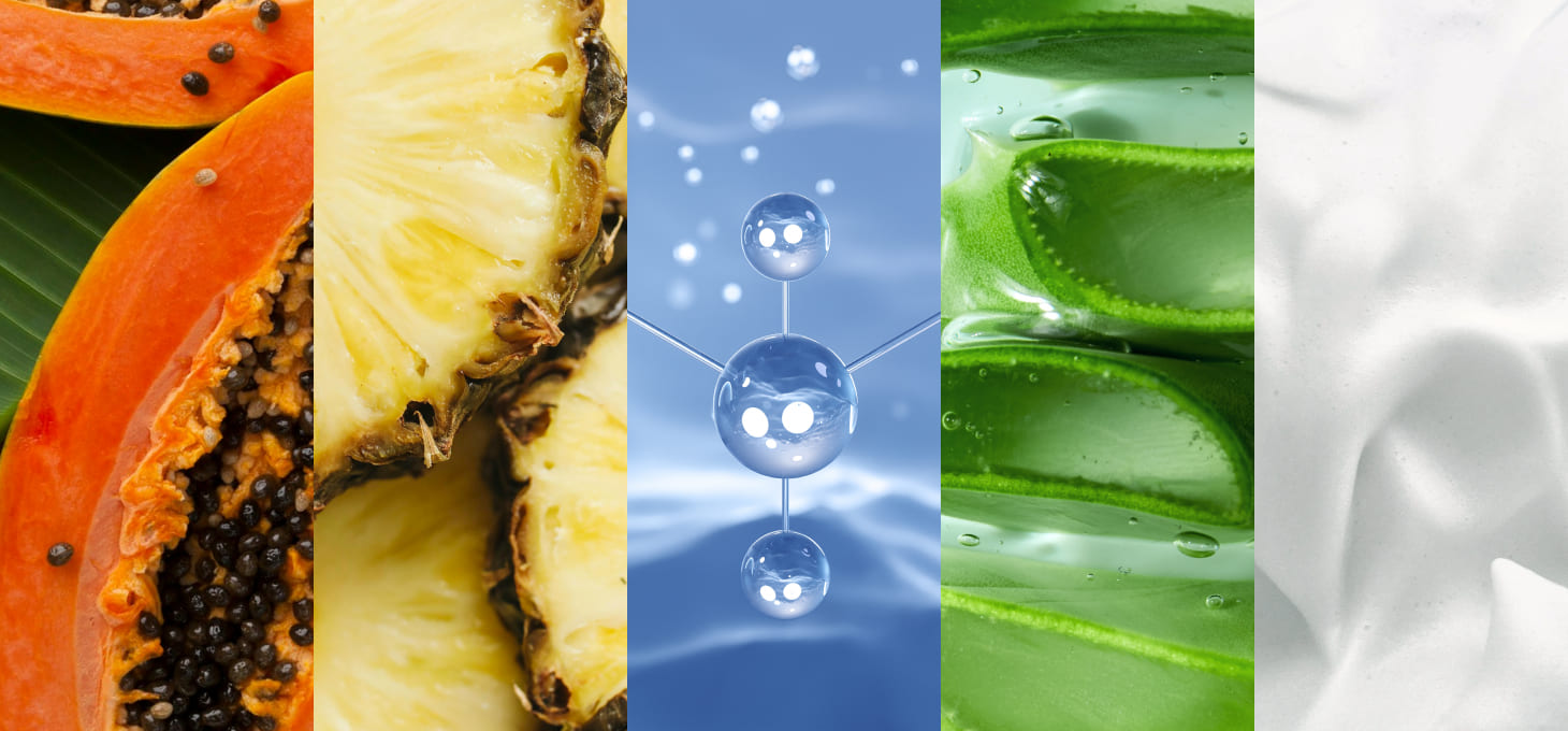 Enzym z papai, delikatnie rozpuszcza martwe komórki naskórka i wygładza skórę.